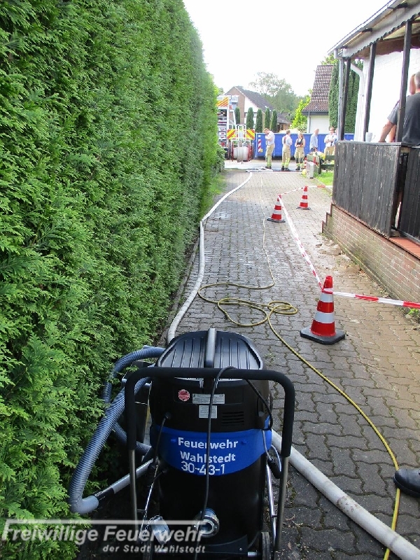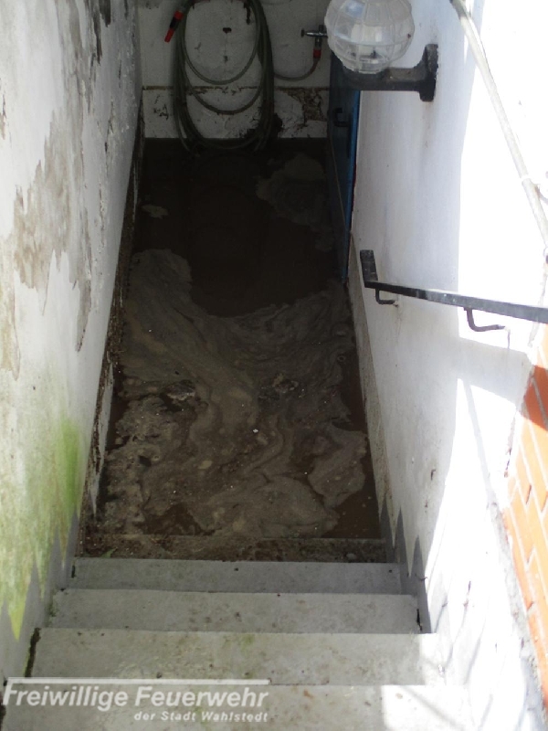 Aus bisher ungeklärten Gründen kam es im Keller eines Einfamilienhauses zu einem massiven Wassereinbruch. Dadurch staute sich das Wasser im Kellergeschoss sowie dem Treppenaufgang auf ca. 80cm. Mithilfe von zwei Tauchpumpen wurde das Wasser abgepumpt und die Einsatzstelle an den Eigentümer übergeben.