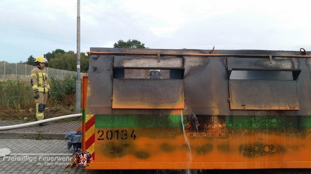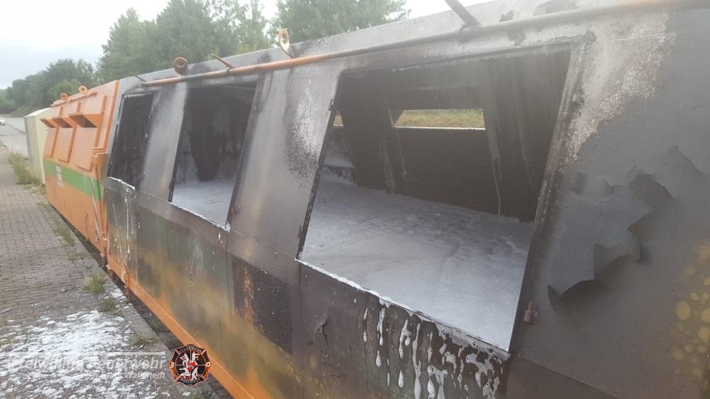 Ein brennender Altpapiercontainer wurde von einem Trupp unter Atemschutz abgelöscht.