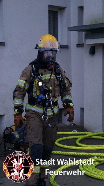 Im weiteren Verlauf waren vier Trupps unter schwerem Atemschutz (11 Einsatzkräfte) notwendig, um das Feuer vollständig zu bekämpfen und ein wieder aufflammen zu verhindern. Hierfür mussten Teile des Kellers per Hand ausgeräumt werden, anschließend wurde der Bereich mit einem Multifunktionslöschmittel (F500 – Schaum) benetzt.