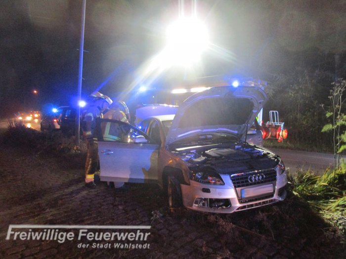 Kurz nach der Alarmierung zu Einsatz Nr. 221 wurden die Feuerwehren Wahlstedt und Rickling zu einem Verkehrsunfall mit einem vermeintlich eingeklemmten Fahrer alarmiert.