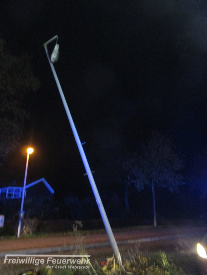 Nachdem das Unfallfahrzeug abgeschleppt wurde, "fällte" die Feuerwehr die Laterne.
