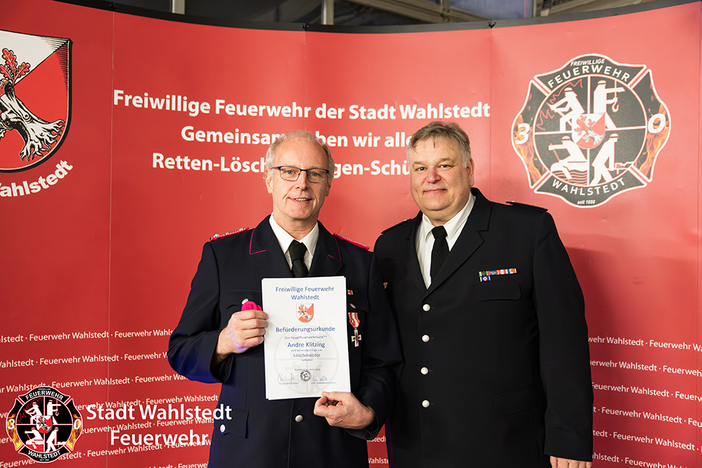 Abschließend wurde der Kamerad Andre Klitzing vom Hauptfeuerwehrmann** zum Löschmeister befördert und auf persönlichen Wunsch in die Ehrenabteilung überstellt.