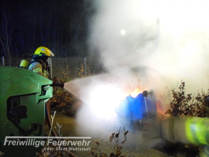 Es brannte ein Papiercontainer auf einem Müllcontainer-Sammelplatz. Dieser wurde von einem Atemschutztrupp gelöscht.