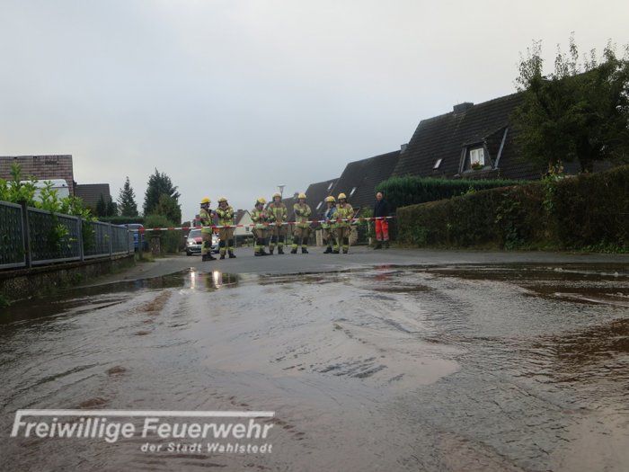 Die Feuerwehr sicherte die Einsatzstelle bis zum Eintreffen des Wasserversorgers ab.