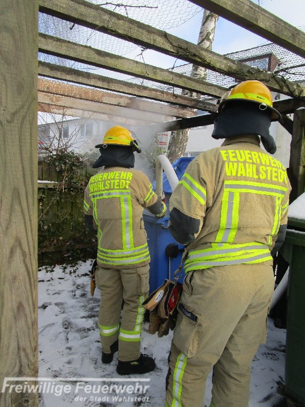Am Sonntag rückte die Feuerwehr zu einem Containerbrand aus. Da die Anwohner bereits erste Löchversuche unternommen hatten, konnte das Feuer klein gehalten werden. Die Feuerwehr übernahm dann mit einem C-Strahlrohr die weitere Brandbekämpfung, und löschte das Feuer. Aufgrund der letzten Monate und dem Standort des Container Sammelplatzes, rückte der komplette Löschzug aus.