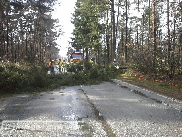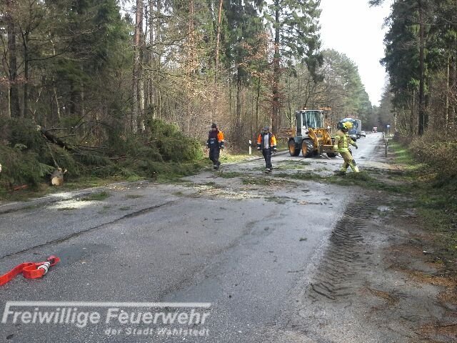 Es wurde ein Baum von der Straße beseitigt. Unterstützt wurde die Feuerwehr mit einem Radlader von einem zufällig anwesenden Unternehmen.