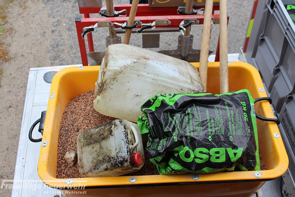Aus bisher ungeklärter Ursache wurden an zwei verschiedenen Stellen in der Hans-Dall-Straße zwei mit Öl gefüllte Kanister abgestellt und umgekippt. Es liefen ca. 25 Liter Öl auf die Straße, die von der Feuerwehr mit sieben Säcken Ölbindemittel abgestreut wurden. Anschließend wurde das Bindemittel zwecks Entsorgung wieder aufgenommen.