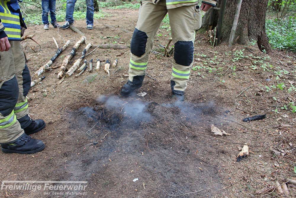 Die Reste eines Lagerfeuers wurden durch die Feuerwehr abgelöscht.