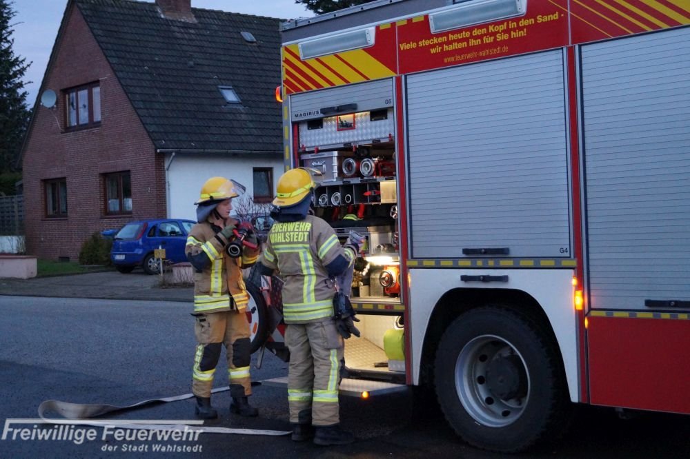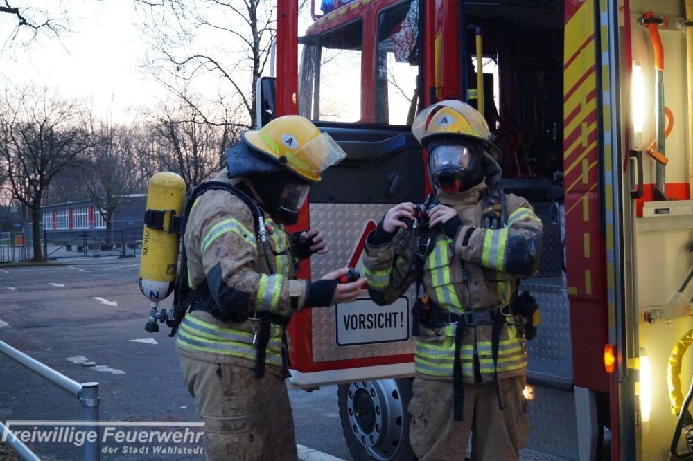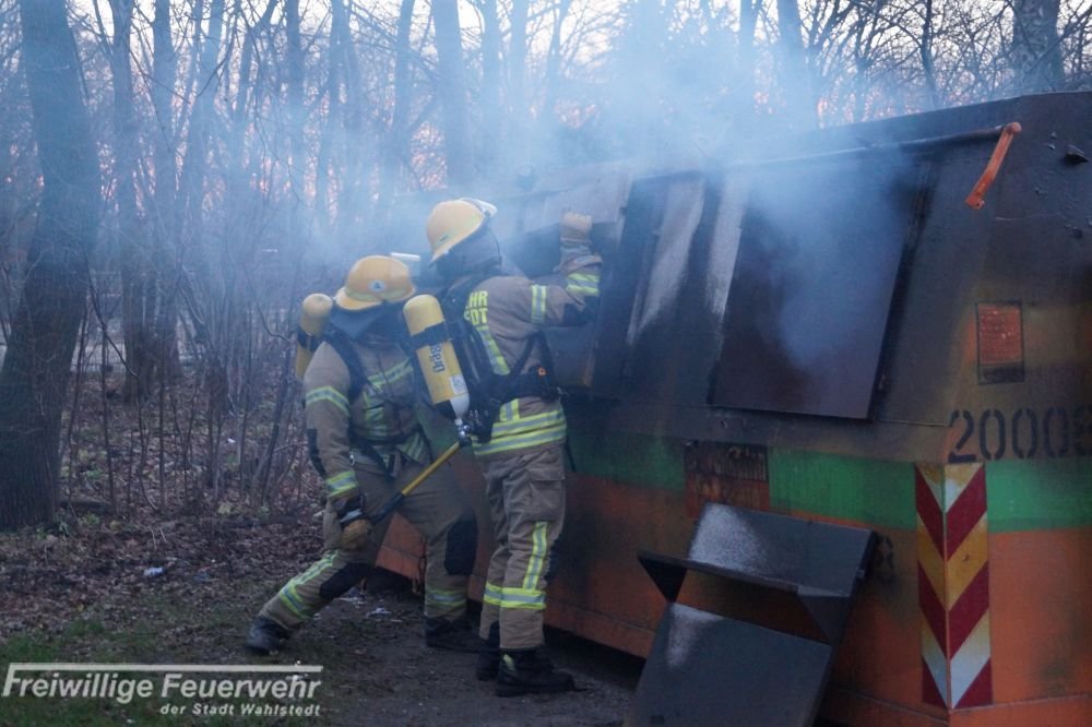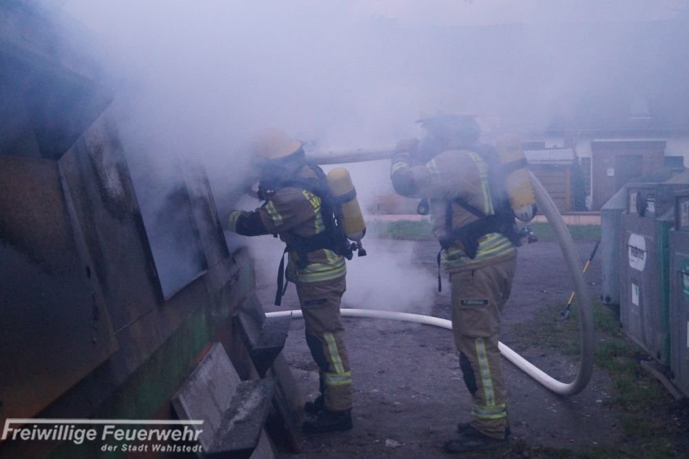 Der Container wurde durch einen Angriffstrupp unter Atemschutz gewaltsam geöffnet und mit einem B-Rohr abgelöscht.