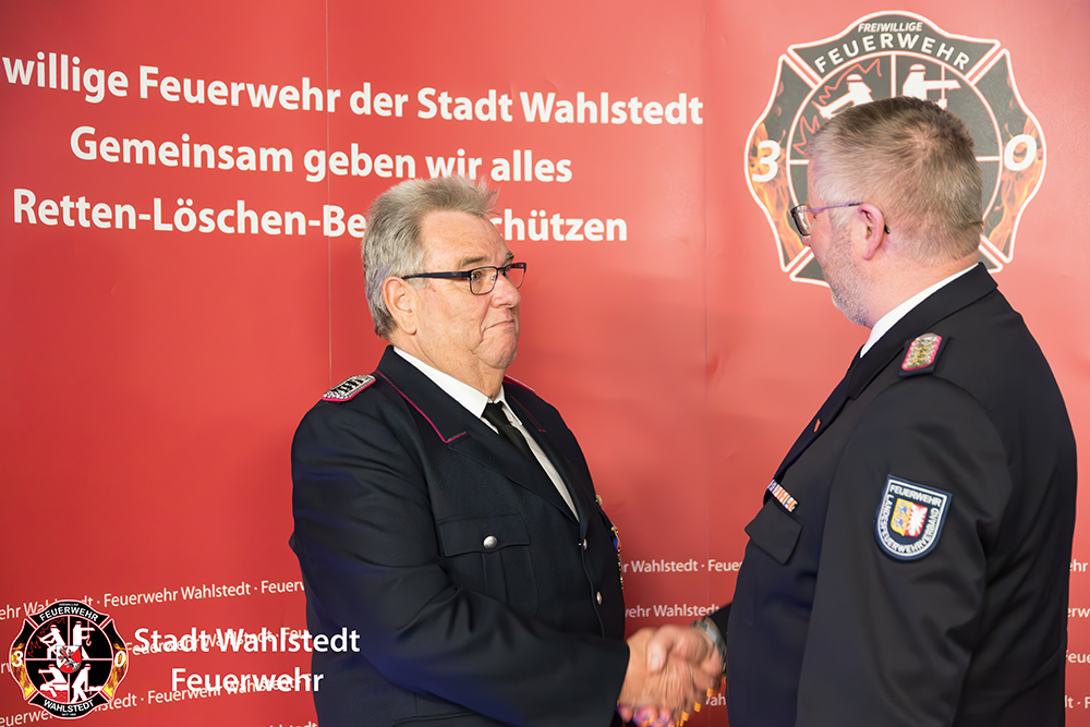 Eine besondere Überraschung hatte der Gemeindewehrführer für unseren Schriftwart und Löschmeister Günter Faßmann vorbereitet. Durch den Kreisbrandmeister Jörg Nero wurde ihm das Deutsche Feuerwehr-Ehrenkreuz in Bronze für seine langjährige unermüdliche Arbeit für die Feuerwehr Wahlstedt verliehen.